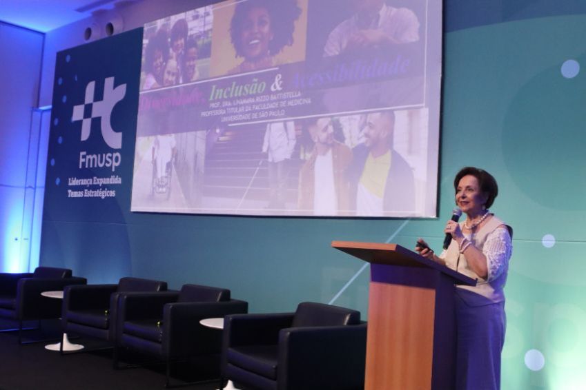 A Presidente do Conselho Diretor do Instituto de Medicina Física e Reabilitação (IMREA), Profª. Drª. Linamara Rizzo Battistella apresentou palestra sobre o tema “Diversidade, Inclusão e Acessibilidade”. Ela sugeriu revisar políticas, sistemas e serviços para identificar falhas e barreiras e assim definir estratégias colaborativas. “Devemos definir padrões operacionais para o acesso igualitário aos serviços públicos e de bem-estar social” – disse.