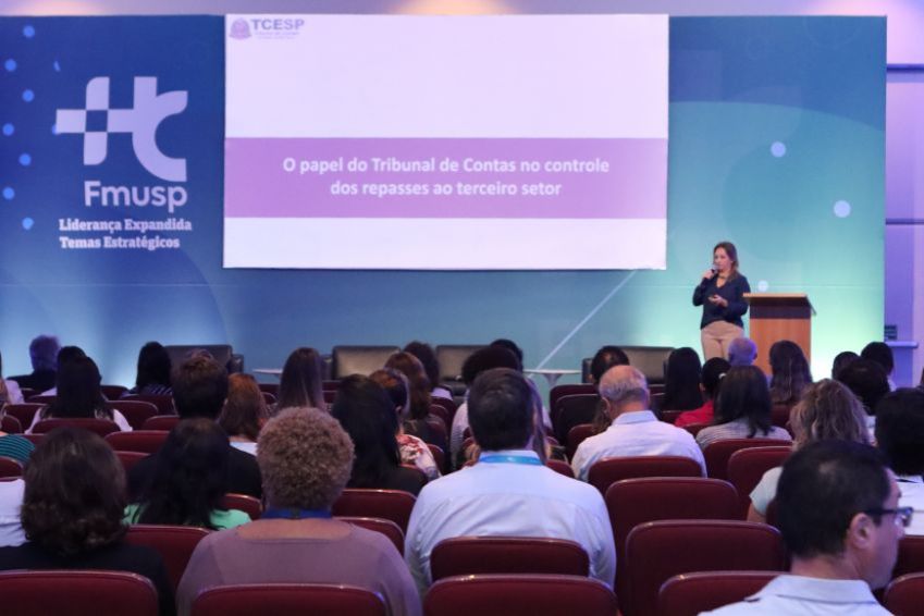Em sua palestra, a Drª. Roberta Rocha Pereira de Veras Sebastião, Diretora Técnica do Tribunal de Contas do Estado de São Paulo (TCE) analisou o tema “Sinergia entre o TCE e o HCFMUSP”. Para ela, "Instituições sólidas são construídas com responsabilidade, cooperação e transparência. Essa é a base de nossa sinergia”.