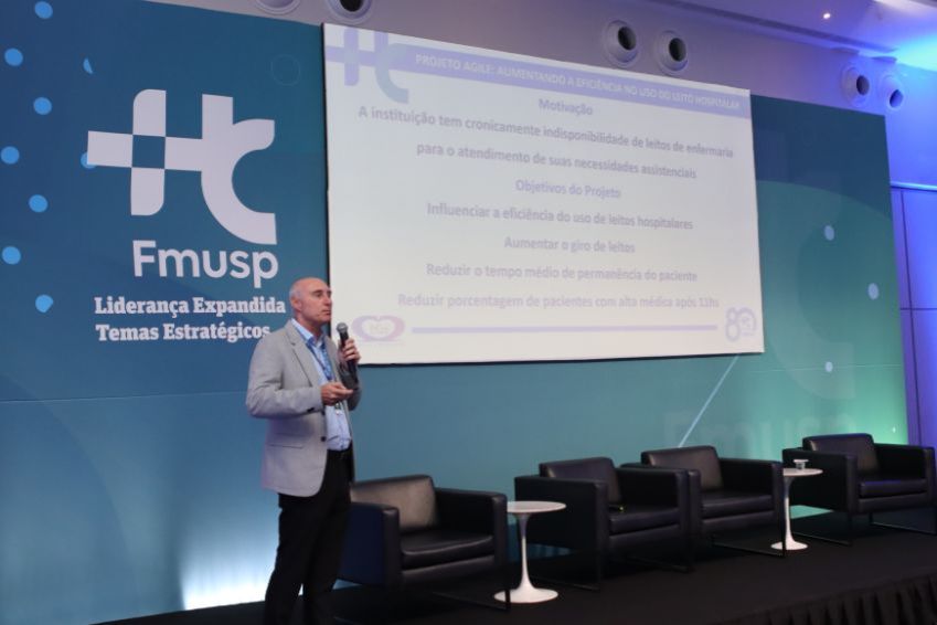 “Eficiência na gestão” foi o assunto do Diretor de Práticas Médicas do InCor, Dr. João Fernando Monteiro Ferreira. Por sua vez, o Coordenador do Núcleo Econômico Financeiro (NEF) do HCFMUSP, Adilson Bretherick, analisou o monitoramento de indicadores de desempenho, acompanhamento de metas e discussão de fluxos e processos de cada Instituto e do Complexo.