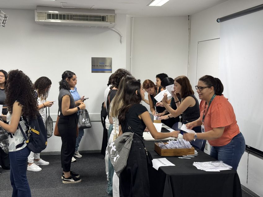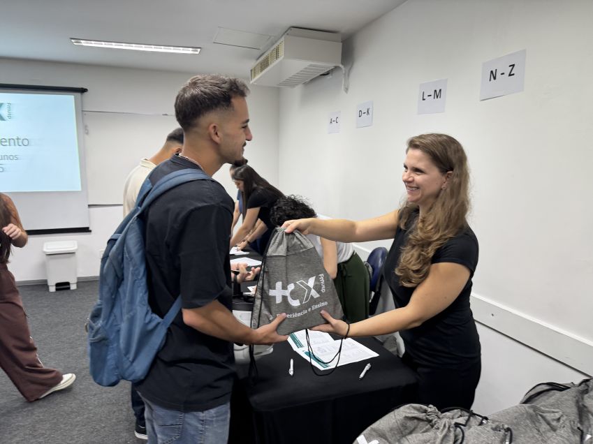 Na ocasião, os alunos receberam o kit de boas-vindas da instituição, contendo o crachá do HCFMUSP, cordão com roller clip, caderno de notas, caneta, garrafa e uma mochila sacola.