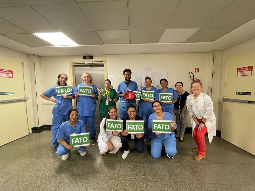 Realizada em parceria (Enfermagem, Centro de Gestão de Pessoas e Núcleo de Qualidade), a ação utilizou dinâmicas interativas como o “quiz” (teste informal para a avaliar aquisição de conhecimentos ou capacidades em ambientes de aprendizagem). O “quiz” chamado "Fato ou Fake" teve como foco situações práticas.