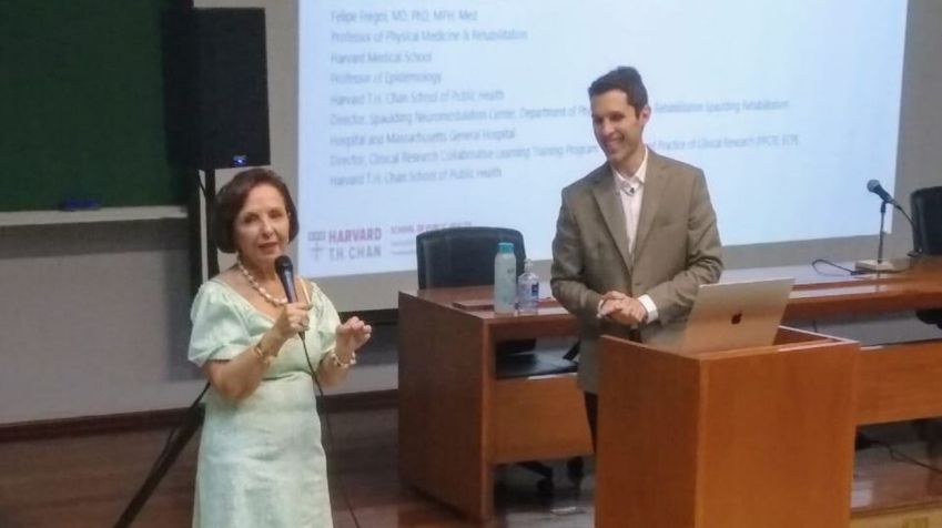 O evento - organizado pela professora Marta Imamura, com apoio do Instituto de Medicina Física e Reabilitação (IMREA) - aconteceu na quarta-feira, 12 de março e contou com 70 participantes presencialmente e cerca de 200 alunos que acompanharam a aula de forma virtual, no Brasil e em Harvard, o que motivou o docente a fazer sua apresentação em inglês.