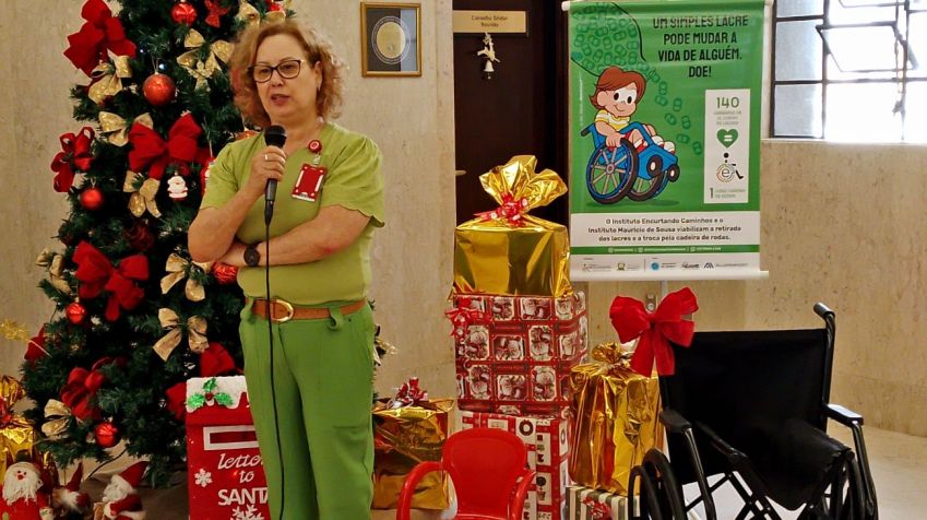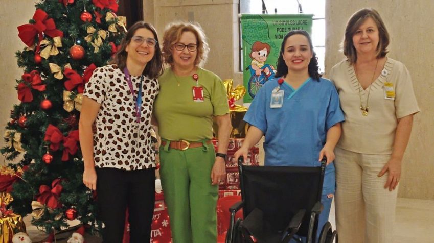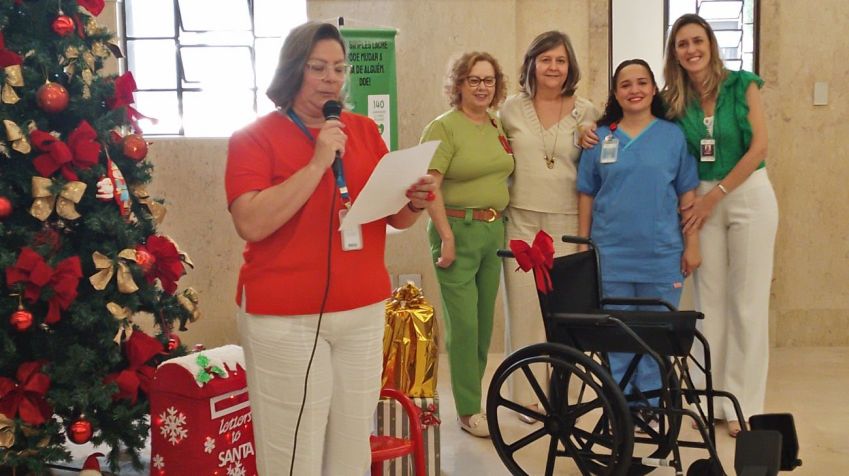 Os colaboradores do Instituto Central (ICHC) acompanharam a entrega de cadeira de rodas ao Departamento de Enfermagem na quarta-feira (18/12).