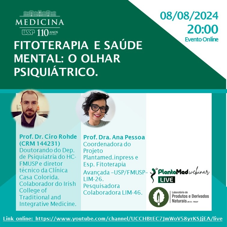 Evento online vai abordar o olhar psiquiátrico do uso de fitoterápicos