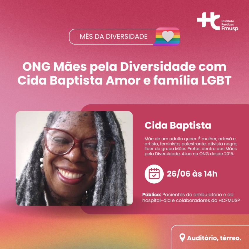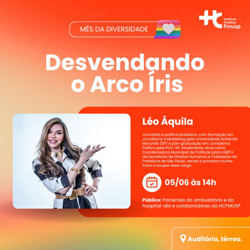 O Instituto Perdizes promoverá uma série de palestras voltadas para pacientes do ambulatório e do hospital-dia, além dos colaboradores do HCFMUSP, em celebração ao Mês da Diversidade durante o mês de junho.