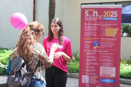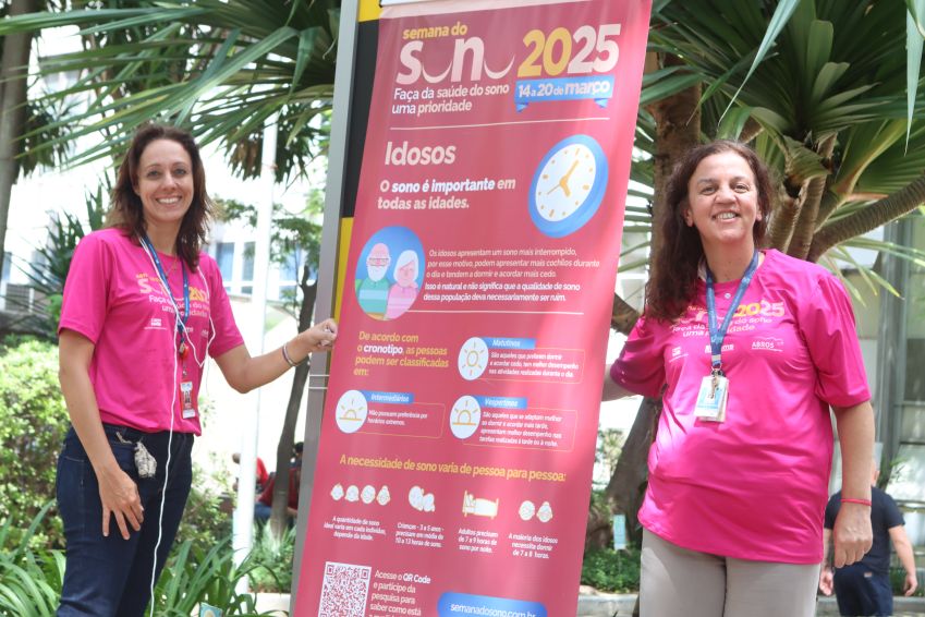 A Academia Brasileira de Sono (ABS) promoveu uma ação na Praça Adib Jatene, terça-feira (18/3). Faça da saúde do sono uma prioridade foi o tema escolhido para a edição do evento este ano. Na ocasião, colaboradores e pacientes receberam panfletos psicoeducativos e puderam se informar e tirar dúvidas sobre os distúrbios do sono.