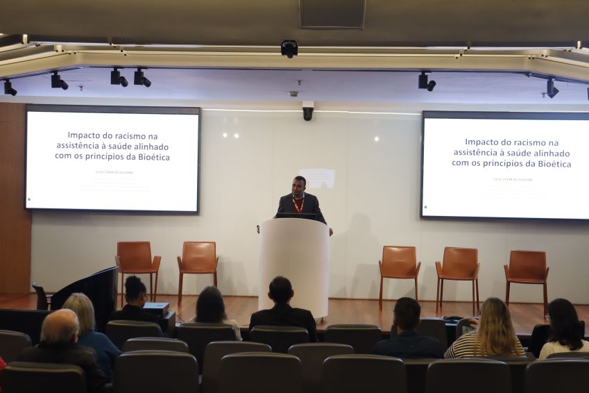 As palestras ministradas pelo Dr. Júlio César de Oliveira e pela Dra. Abna Vieira trouxeram contribuições valiosas e promoveram reflexões profundas sobre o racismo e seus impactos na assistência à saúde, tema de grande relevância ética e social, abordado à luz dos princípios da bioética e das evidências apresentadas pelo projeto de pesquisa RACE ID.
