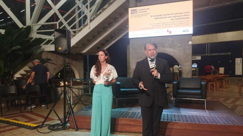 Na terça-feira (3/12), o evento incluiu uma conversa sobre o tema "Inclusão fora do ambiente terapêutico", conduzida pelo Dr. André Sugawara, médico fisiatra da Rede Lucy Montoro, e por Érica Castro Leite, colaboradora do Serviço de Condicionamento Físico.