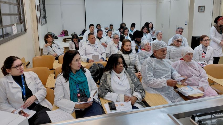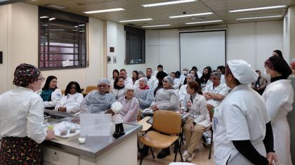A Divisão de Nutrição e Dietética (DND) realizou, na sexta-feira (13/06/25), a Oficina Culinária de Receitas Hiperproteicas com participação de pacientes e profissionais de Nutrição, Psicologia e Enfermagem.