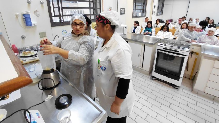As demonstrações incluíram preparos de porções individuais e que não requeriam muita técnica ou tempo, como o bolo de caneca feito no micro-ondas. O objetivo era auxiliar os colaboradores, pacientes e seus familiares a pensar em opções saudáveis e simples de fazer para manter o consumo diário recomendado de proteínas.