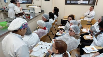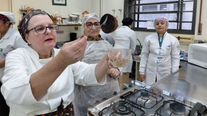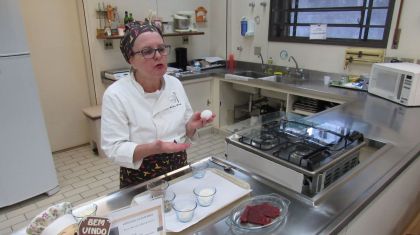 A aula foi conduzida pela Nutricionista Chefe da Seção de Cozinha Experimental do Instituto Central do Hospital das Clínicas da FMUSP, Profª. Drª. Andrea Jorge. Todos os participantes receberam apostila com receitas apresentadas e preparadas.
