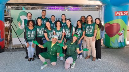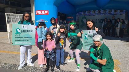 O Instituto do Câncer do Estado de São Paulo (Icesp) realizou uma ação especial em alusão ao mês de conscientização sobre o câncer de cabeça e pescoço, na calçada do prédio da Federação das Indústrias do Estado de São Paulo (FIESP), no dia 17 de julho.
