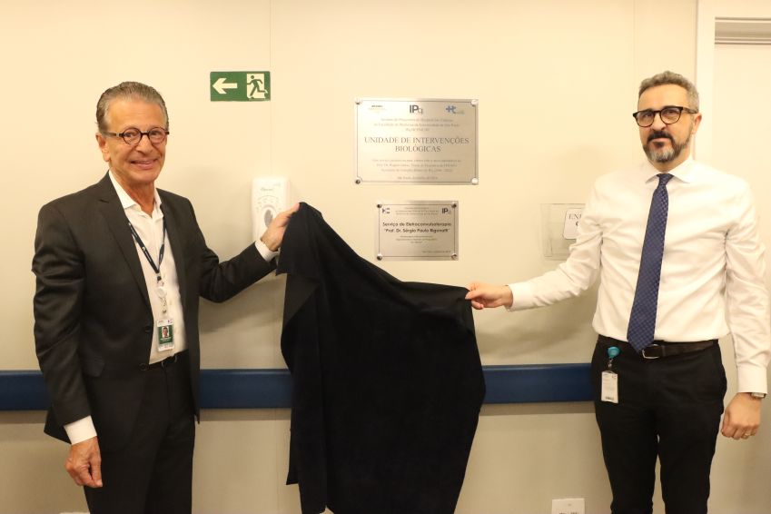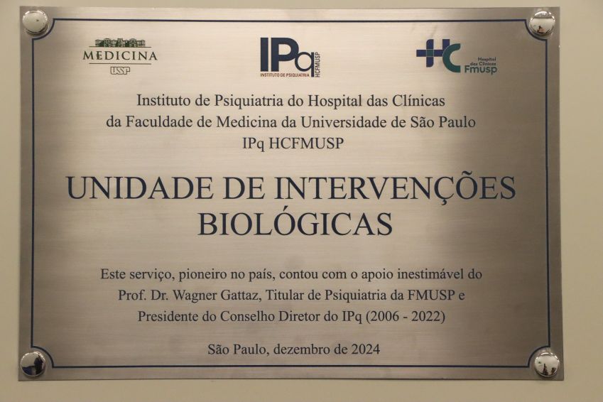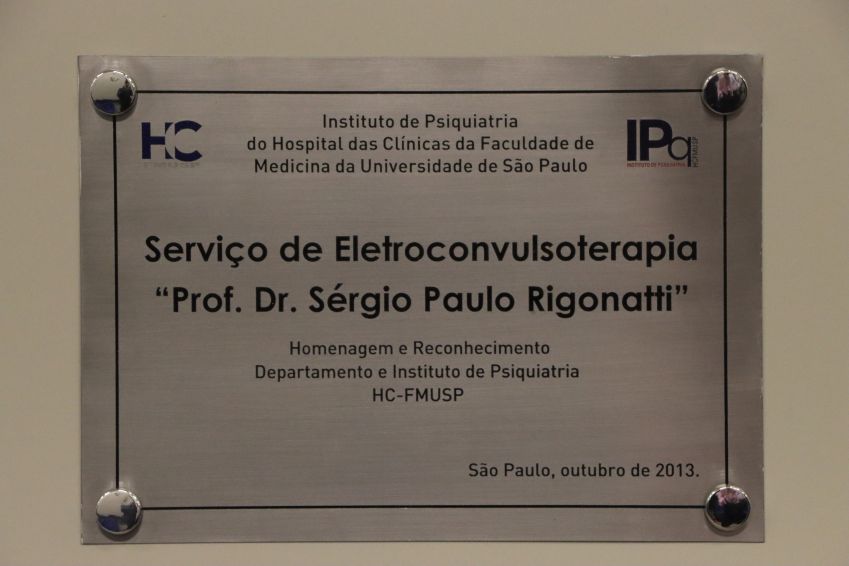 Na quarta-feira (04/12), foram descerradas duas placas na Unidade de Intervenções Biológicas. Uma delas destaca o apoio do Prof. Dr. Wagner Gattaz, Titular de Psiquiatria da FMUSP e Presidente do Conselho Diretor do IPq (2006 - 2022). Outra placa é uma homenagem do Departamento e Instituto de Psiquiatria ao Prof. Dr. Sérgio Paulo Rigonatti que agora dá nome ao Serviço de Eletroconvulsoterapia.