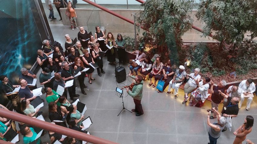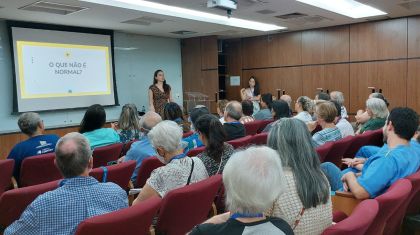 Também contou com sessões de mobilidade funcional e atividades direcionadas ao público que aguardava por consultas no Prédio dos Ambulatórios. A programação foi encerrada com palestra de especialista em aposentadoria e benefícios e apresentação musical dos corais FMUSP e Gero Saúde.