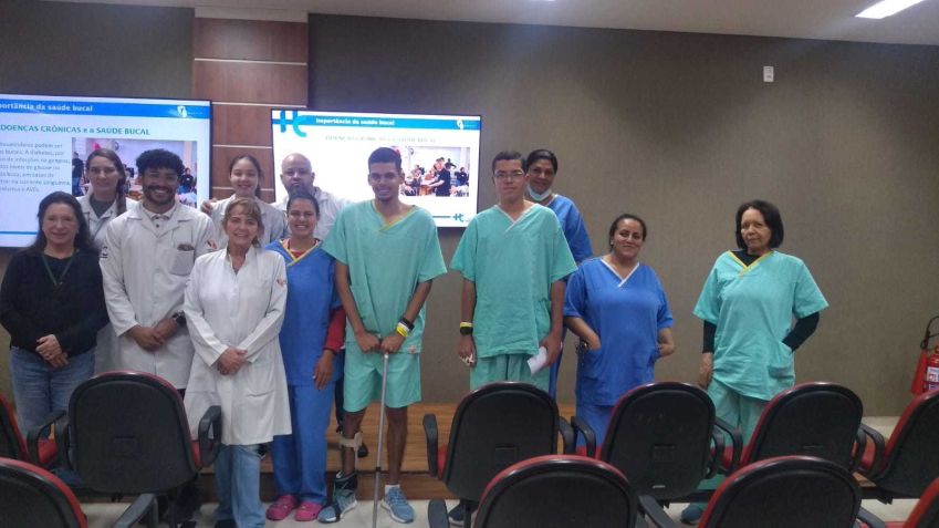 Os profissionais conversaram com pacientes e colaboradores e passaram algumas orientações para adoção de hábitos saudáveis que impactam na prevenção de cáries e doenças da boca como: manutenção de uma dieta equilibrada, uso diário do fio dental, escovação dos dentes de maneira correta, visitas regulares ao dentista e cuidados com a saúde do organismo. “As doenças da boca vêm da placa bacteriana. Se houver resto de comida na boca, estas doenças aparecem. A falta de escovação é a causa maior destas doenças e a higienização é o principal cuidado. Escova e fio dental são os responsáveis pela manutenção da saúde bucal. A escovação correta é mais importante que o uso de pasta fluoretada, sendo a escovação noturna a mais importante pois ficaremos mais tempo sem comer e com a imunidade mais baixa”, pontua a Dra. Leda Maria de Campos Guerra, do Serviço de Odontologia do IMREA.