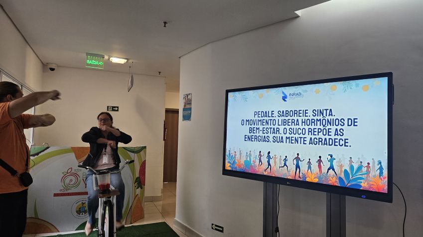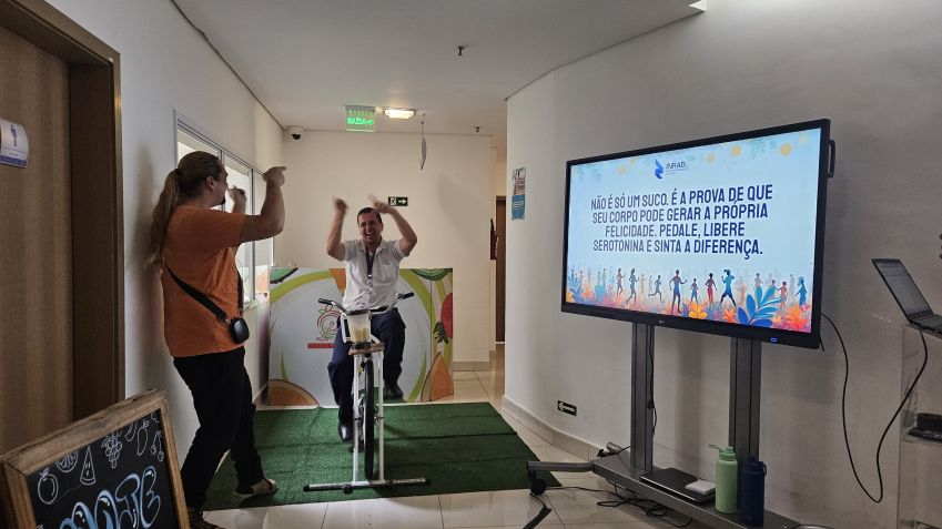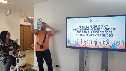 Durante a atividade, colaboradores tiveram a oportunidade de pedalar em uma bicicleta geradora de energia para preparar seu próprio suco natural, um gesto simbólico sobre a importância do autocuidado. Além da dinâmica, a ação trouxe orientações sobre saúde mental, alimentação equilibrada e qualidade de vida.