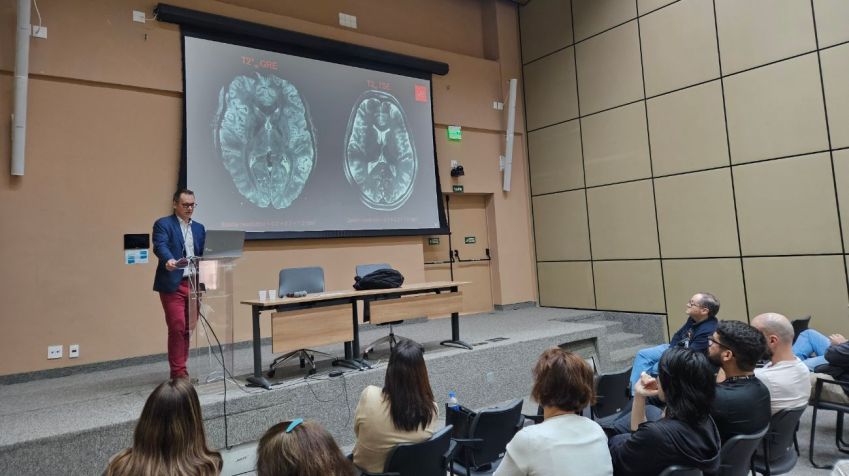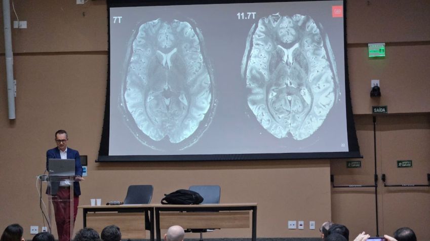 Durante a apresentação, o médico detalhou a construção e instalação da máquina de ressonância magnética de 11,7T para o corpo humano (a única do mundo), um projeto que levou mais de uma década para ser concretizado. O evento reuniu radiologistas, físicos, engenheiros e pesquisadores da área.