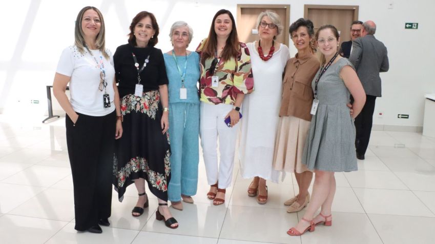 A mesa solene de abertura foi composta pela Secretaria de Estado da Saúde de São Paulo, Drª. Cristina Balestrin; pelo Superintendente do HCFMUSP, Engº. Antonio José Rodrigues Pereira; pelo Presidente do Conselho do Instituto de Radiologia (InRad) e do InovaHC, Prof. Dr. Giovanni Guido Cerri e pelo Diretor da Divisão de Pneumologia do Instituto do Coração (InCor) e Diretor de Saúde Digital do HCFMUSP, Prof. Dr. Carlos Carvalho.