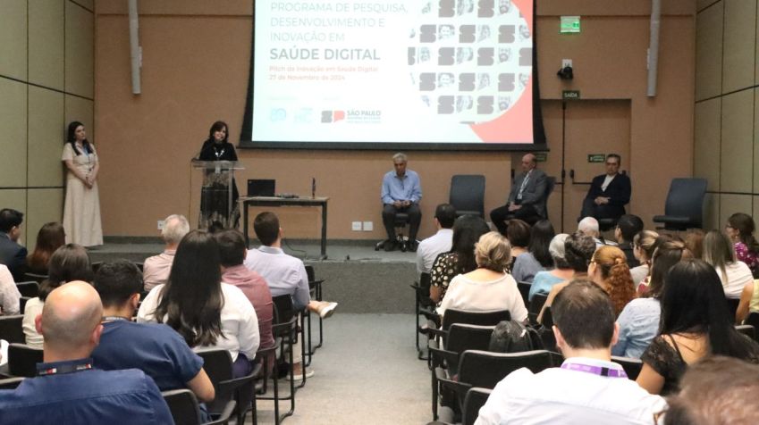 O Pitch de Inovações em Saúde Digital aconteceu no dia 27 de novembro, no auditório do Instituto de Radiologia (InRad), e reuniu ideias inovadoras apresentadas pelas equipes do Programa de Pesquisa, Desenvolvimento e Inovação em Saúde Digital (PDI Saúde Digital). O evento foi promovido pelo HCFMUSP, InovaHC e pela Secretaria da Saúde São Paulo (SES/SP).